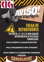 O persoal repartidor de Pizzerías Cambalache irá á folga para reclamar o cobro dos atrasos e melloras laborais