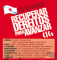 Este 10 de Marzo, a CIG mobilizarase pola recuperación dos nosos dereitos, contra a precariedade e a pobreza
