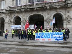 O persoal de Valoriza Auga, que leva un mes en folga, traslada as súas protestas até o Concello da Coruña