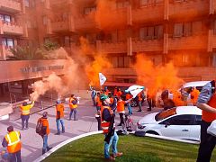 O persoal levou as mobilizacións até a planta da multinacional do aluminio en San Cibrao