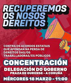 A central sindical convoca concentración para o vindeiro mércores 18 de marzo, na Delegación do Goberno na Coruña