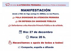 CIG-Saúde de Vigo chama a participar na manifestación "pola dignidade na Atención Primaria" deste xoves