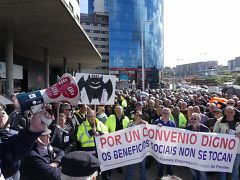 Persoal en activo e pasivo da empresa mobilízase en Madrid co gallo da xunta de accionistas