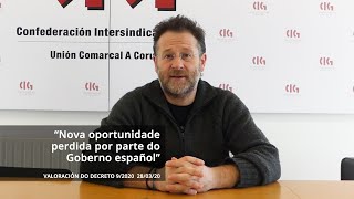 A central sindical advirte de que as insuficientes medidas económicas adoptadas provocarán un empobrecemento aínda maior da clase traballadora