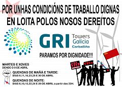 Convocan paros en GRI Towers Galicia tras o bloqueo da empresa á negociación de xornada e salarios