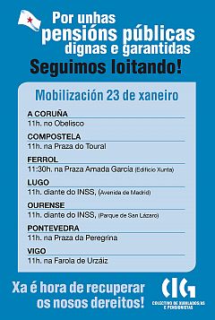As protestas, en demanda tamén dunhas pensións dignas, terán lugar este xoves 14 de xaneiro nas sete cidades galegas
