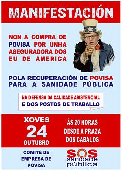 SOS Sanidade Pública e comité de Povisa convocan manifestación este xoves contra a venda do hospital
