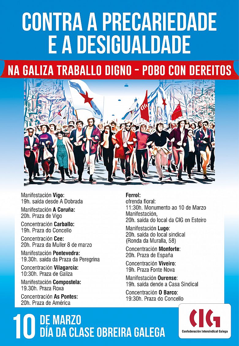 A CIG reivindicará este 10 de Marzo políticas urxentes contra a precariedade e a desigualdade