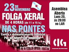 A CIG convoca asemblea aberta nas Pontes para informar e chamar a secundar a folga do xoves 23
