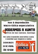 A Coordinadora Eólica Así Non! rodeará a Xunta este domingo contra o espolio eólico e enerxético do país