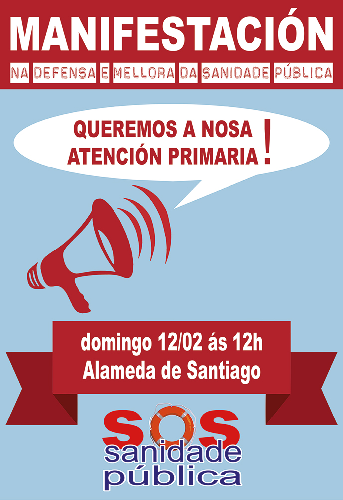 Manifestación de SOS Sanidade en Santiago o 12 de febreiro pola defensa e a mellora do sistema público