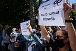 Persoal dos centros sociaculturais concéntrase diante do concello de Santiago en demanda dunha negociación
