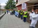 Pensionistas da CIG de Vigo trasladan ao centro de saúde de Coia a súa campaña en defensa da atención primaria