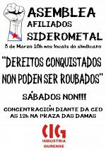 A CIG-Industria de Ourense convoca protestas contra a desregularización da xornada no sector do siderometal