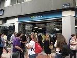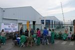 O persoal de Atento mobilízase nunha tenda de Movistar para informar das condicións nas subcontratas de atención telefónica
