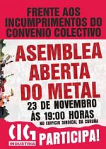 Asemblea aberta na Coruña para avaliar os incumprimentos do convenio do metal e as accións a realizar