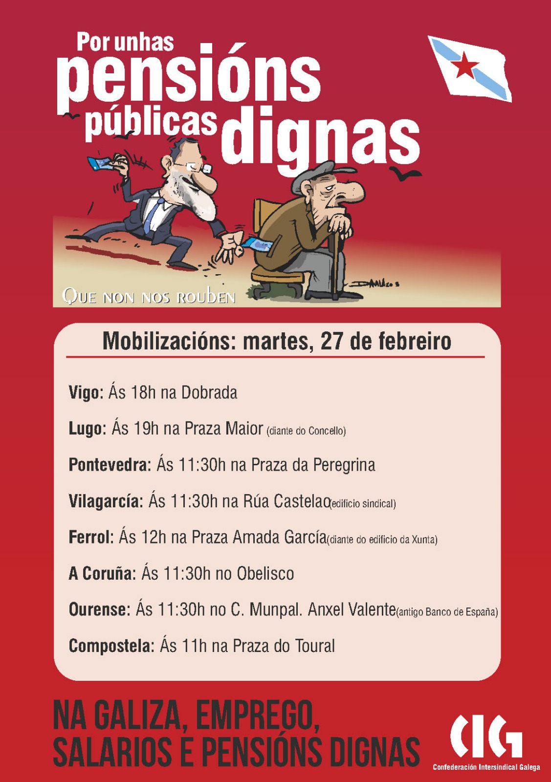 Xubilados/as e pensionistas da CIG sairán ás rúas o 27 de febreiro “por unhas pensións públicas dignas”