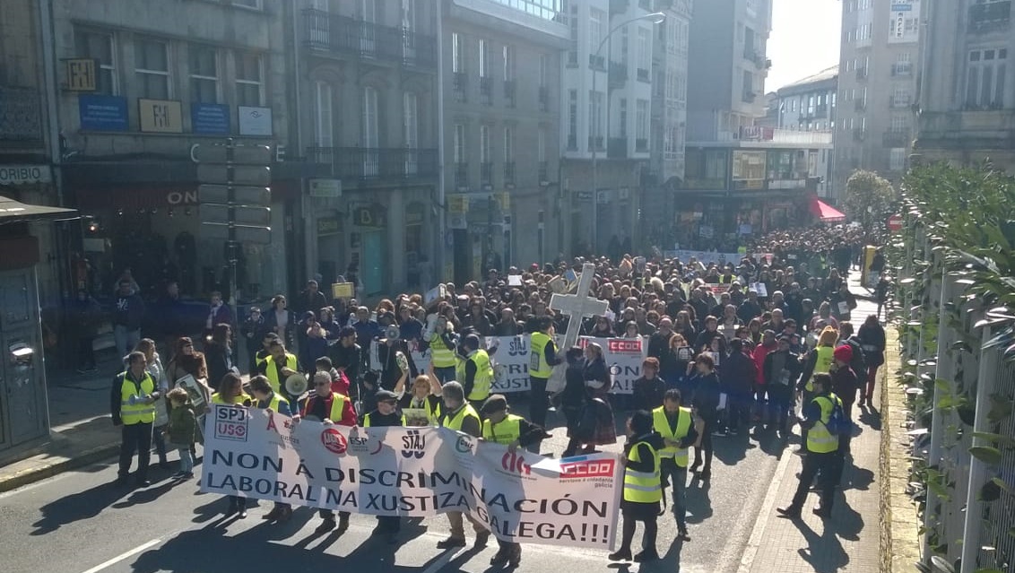 Traballadoras/es de Xustiza toman as rúas de Compostela en demanda de que rematen as discriminacións