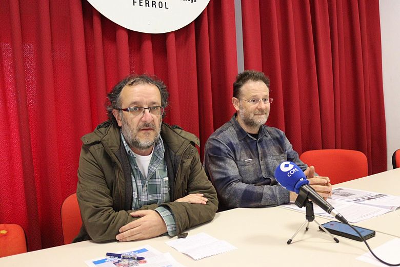 O secretario xeral da CIG, Paulo Carril, e o secretario comarcal da CIG de Ferrol, Manuel Anxo Grandal, foron os encargados de presentar as mobilizacións que a central nacionalista ten convocadas para o próximo domingo baixo o lema “STOP precariedade. Traballo digno. Por un marco galego de relacións laborais”.