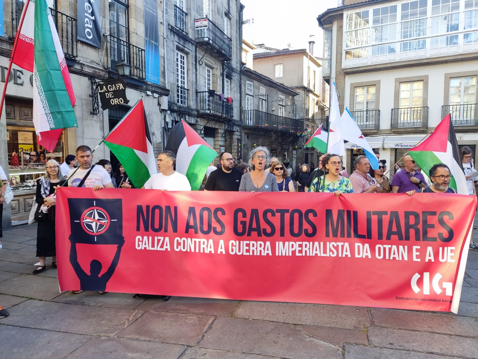 Nas protestas tamén se rexeitou o acordo para incrementar aínda máis os gastos militares acadado na cimeira da OTAN que afonda “nun camiño de militarización da economía e da sociedade que de nada serve para mellorar as nosas vidas, nin para gañar en seguridade”. Fronte a isto, a plataforma demandou unha aposta clara pola diplomacia e o respecto ao dereito internacional “que garanta a paz en base ao dereito dos pobos ao exercicio da súa soberanía sen inxerencias”.
