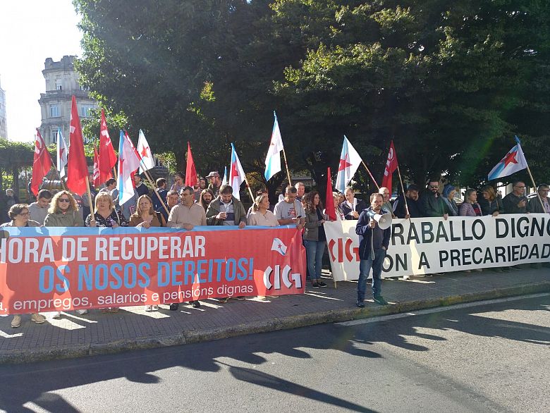 Freo na recuperación do emprego, postos de traballo con baixos salarios e de escasa duración, incremento dos contratos a tempo parcial, cadeas interminábeis de subcontratación, perda de poboación activa a causa da emigración e o avellentamento da poboación, caída do poder adquisitivo en máis dun 15%; en definitiva, aumento da pobreza laboral, da precariedade e da explotación. Esta é a radiografía de Galiza contra á que o secretario xeral da CIG, Paulo Carril, emprazou a seguírmonos mobilizando nas rúas e nos centros de traballo "para reivindicar a necesidade de recuperar os nosos dereitos e que as galegas e os galegos teñamos emprego, salarios e pensións dignas".