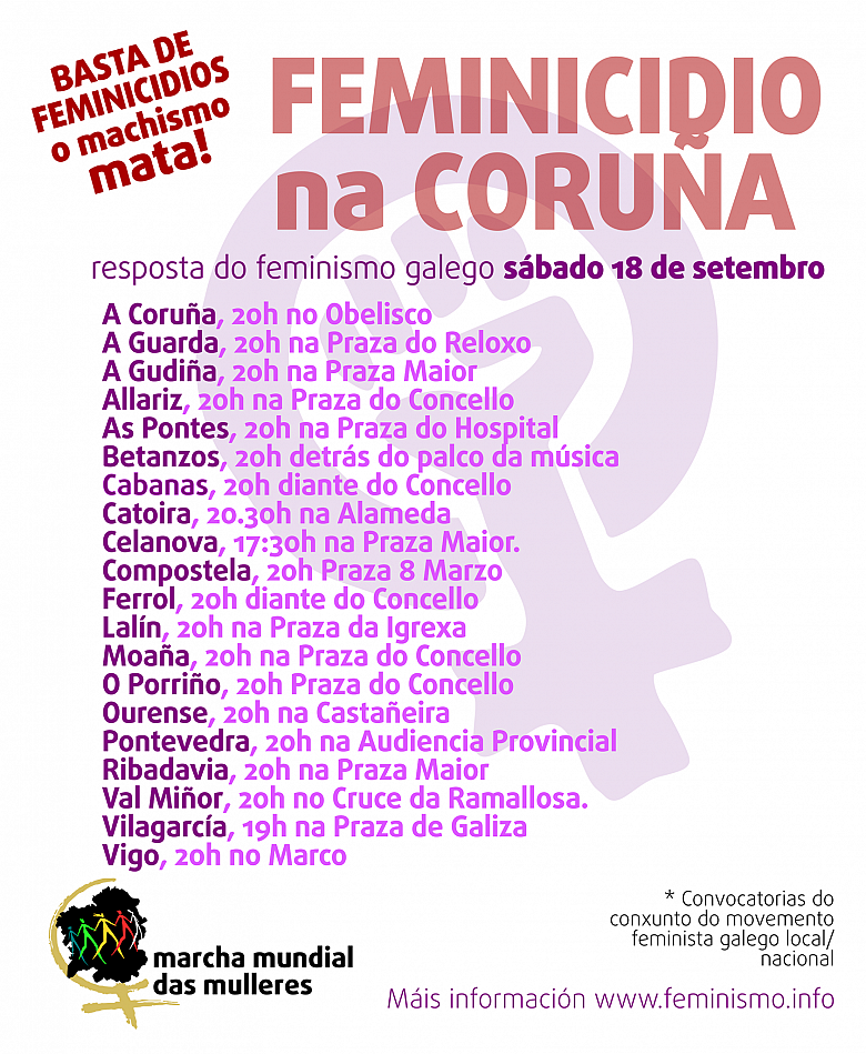 NOTA: Para consultar as convocatorias en actualización: http://feminismo.info/feminismo/blog/ante-o-feminicidio-de-monica-marcos-pineiro-na-coruna/
