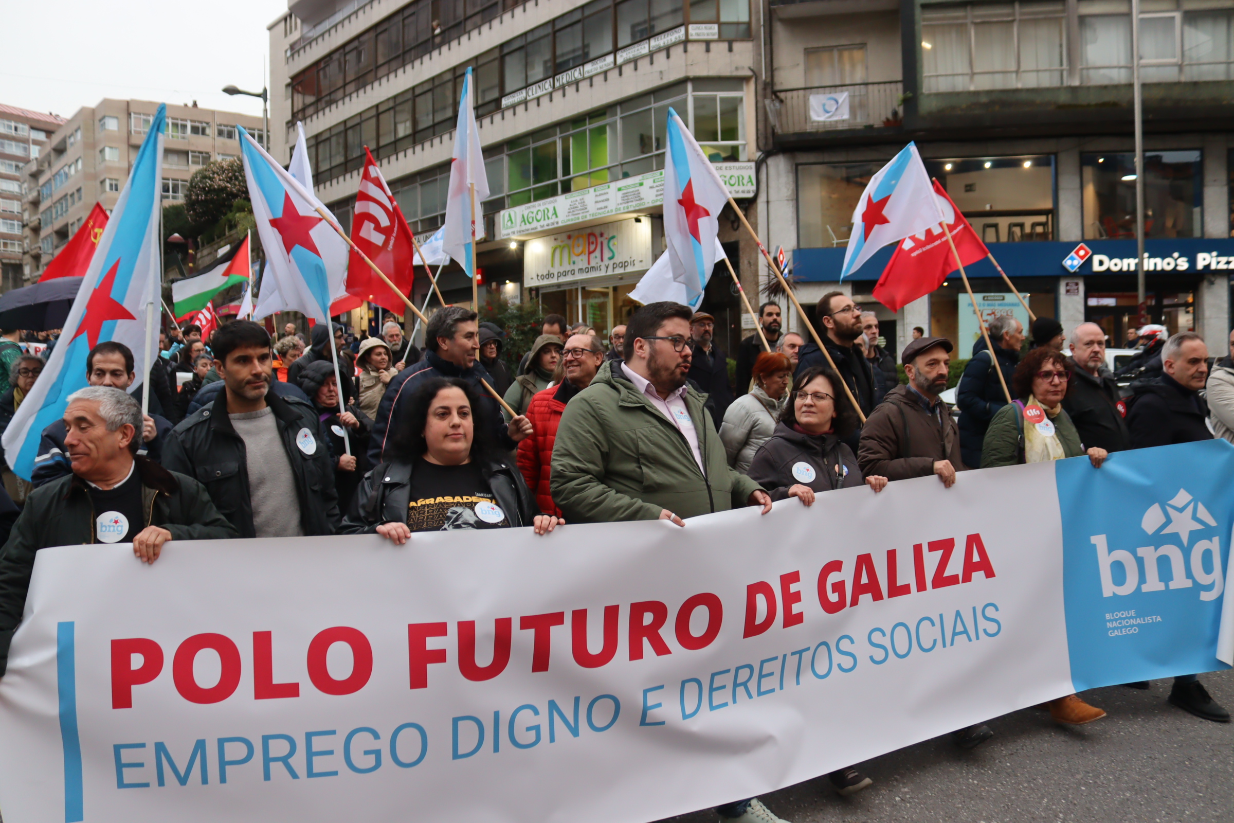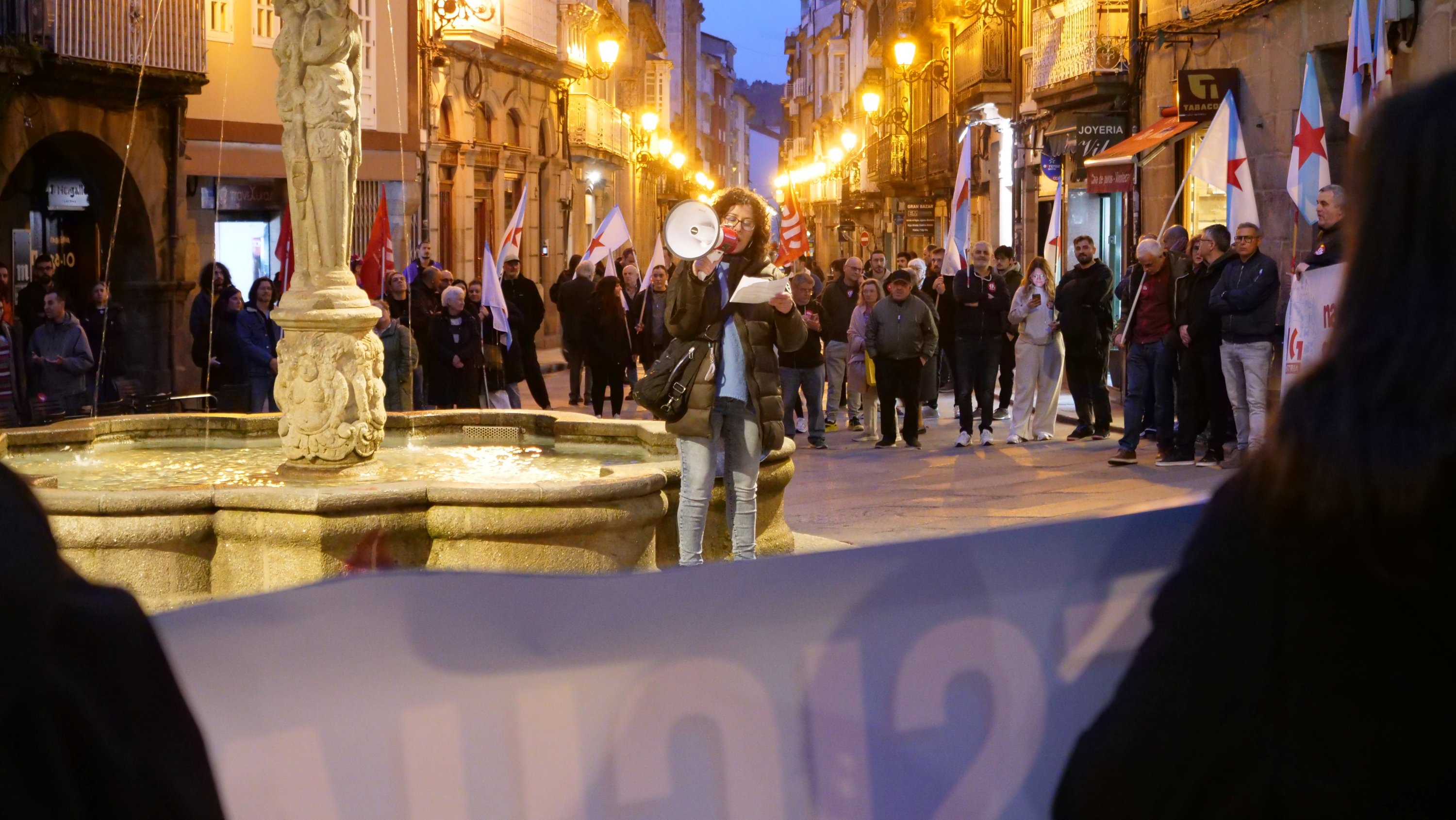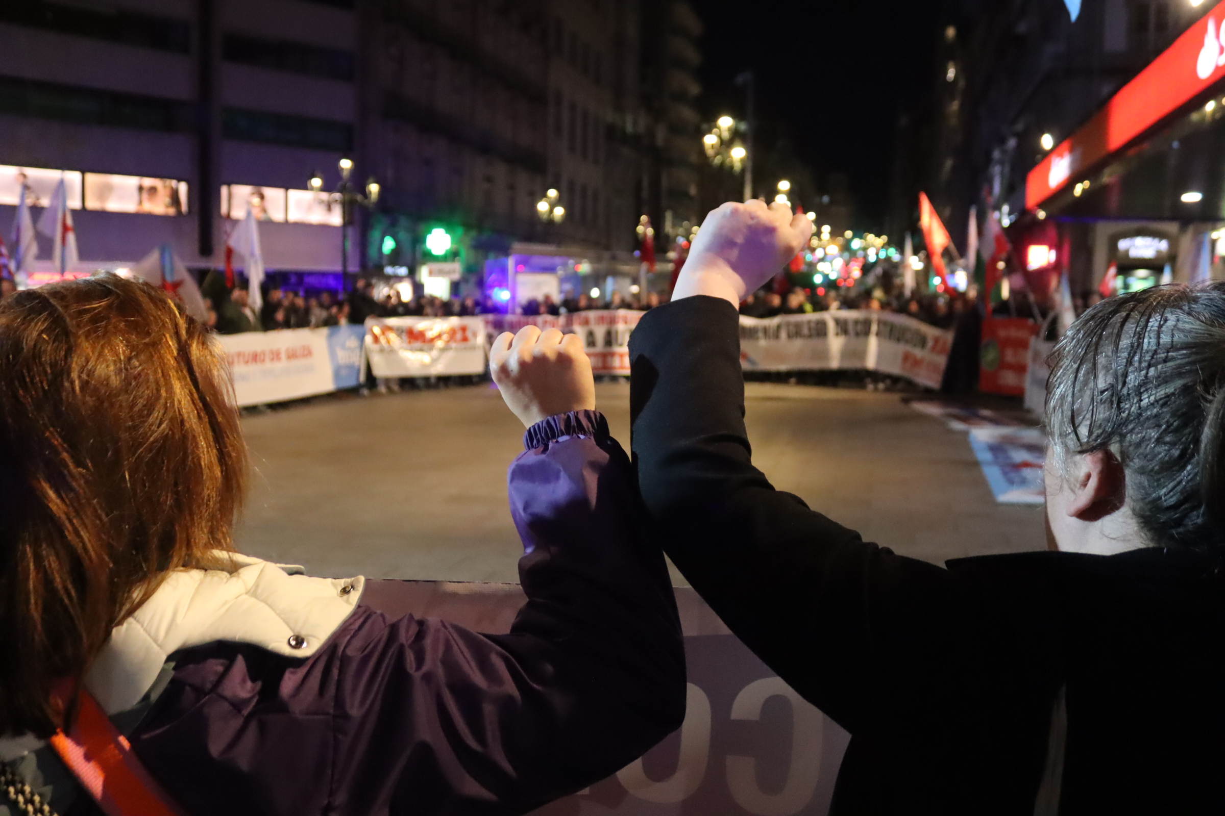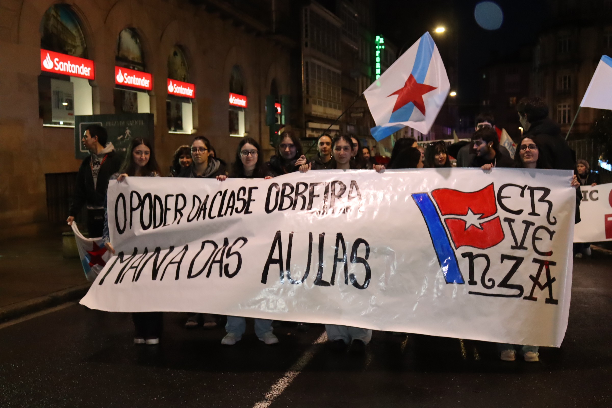 Apelou á loita e á construción de poder popular como o camiño para mudar esta realidade, forzar a un cambio das políticas dos gobernos e enfrontar os ataques da patronal. “Está demostrado que a loita e a mobilización dan resultado”, aseverou, pondo como exemplo “a capacidade da unión do pobo galego para frear Altri” e alentando que “con esa mesma capacidade tamén lograremos saír da emerxencia lingüística para avanzar no proceso de normalización da lingua galega”. Neste punto animou a participar no acto programado por Queremos Galego para o vindeiro sábado, 14 de marzo, ás 12h, na Praza da Quintana en Compostela.