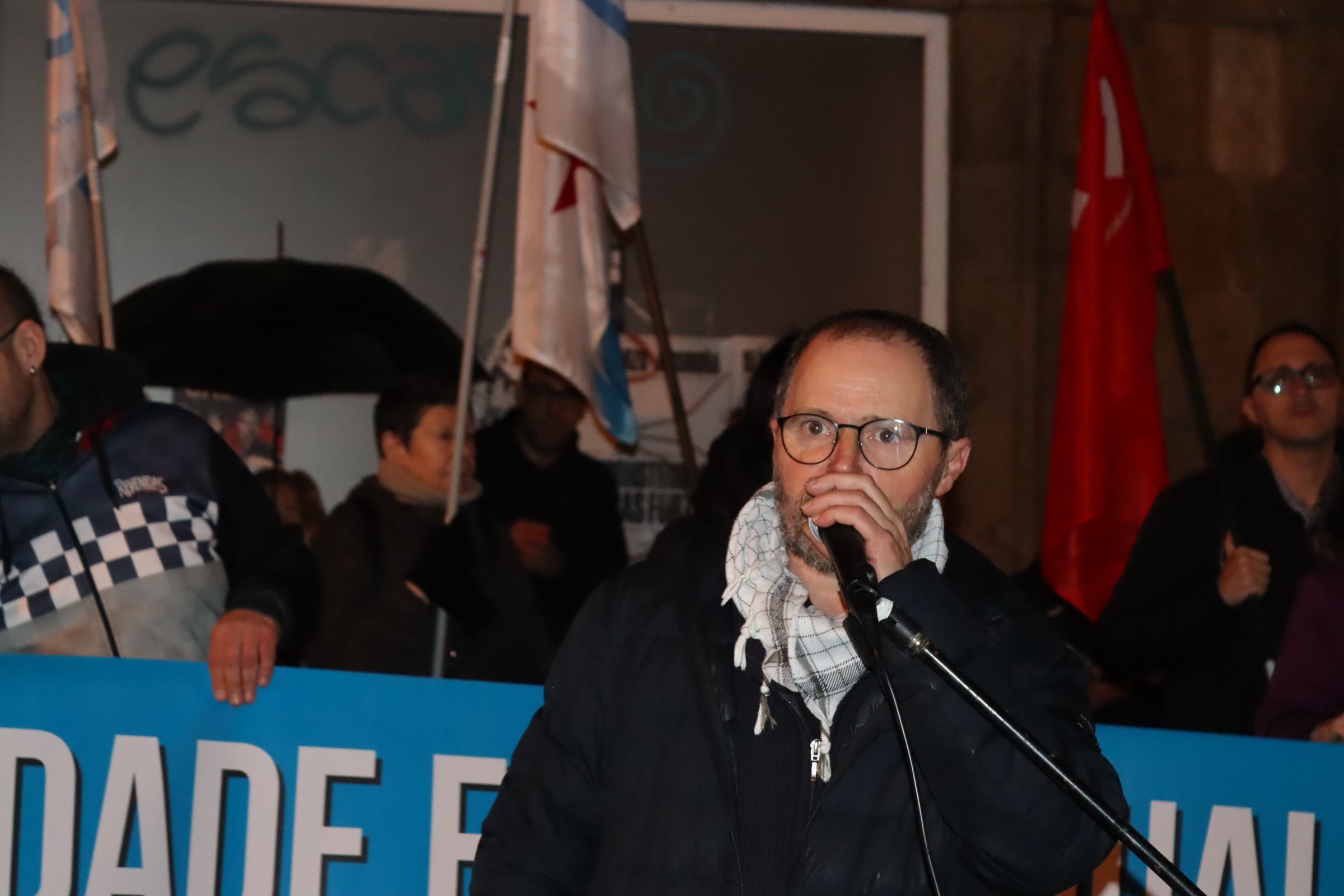 Nesta liña, apelou a responder “facendo uso das nosas armas, das únicas que queremos empregar, que son a palabra, a solidariedade e a mobilización social. O galego é un pobo que ten demostrado historicamente a súa adhesión fraternal ás causas xustas en calquera parte do mundo”, lembrou. E así se veu demostrando nas convocatorias periódicas para denunciar o xenocidio do pobo palestino.
