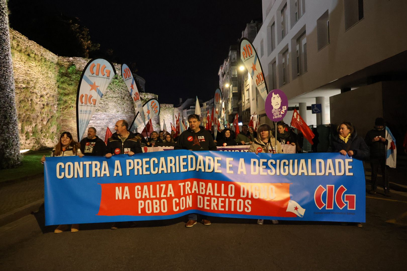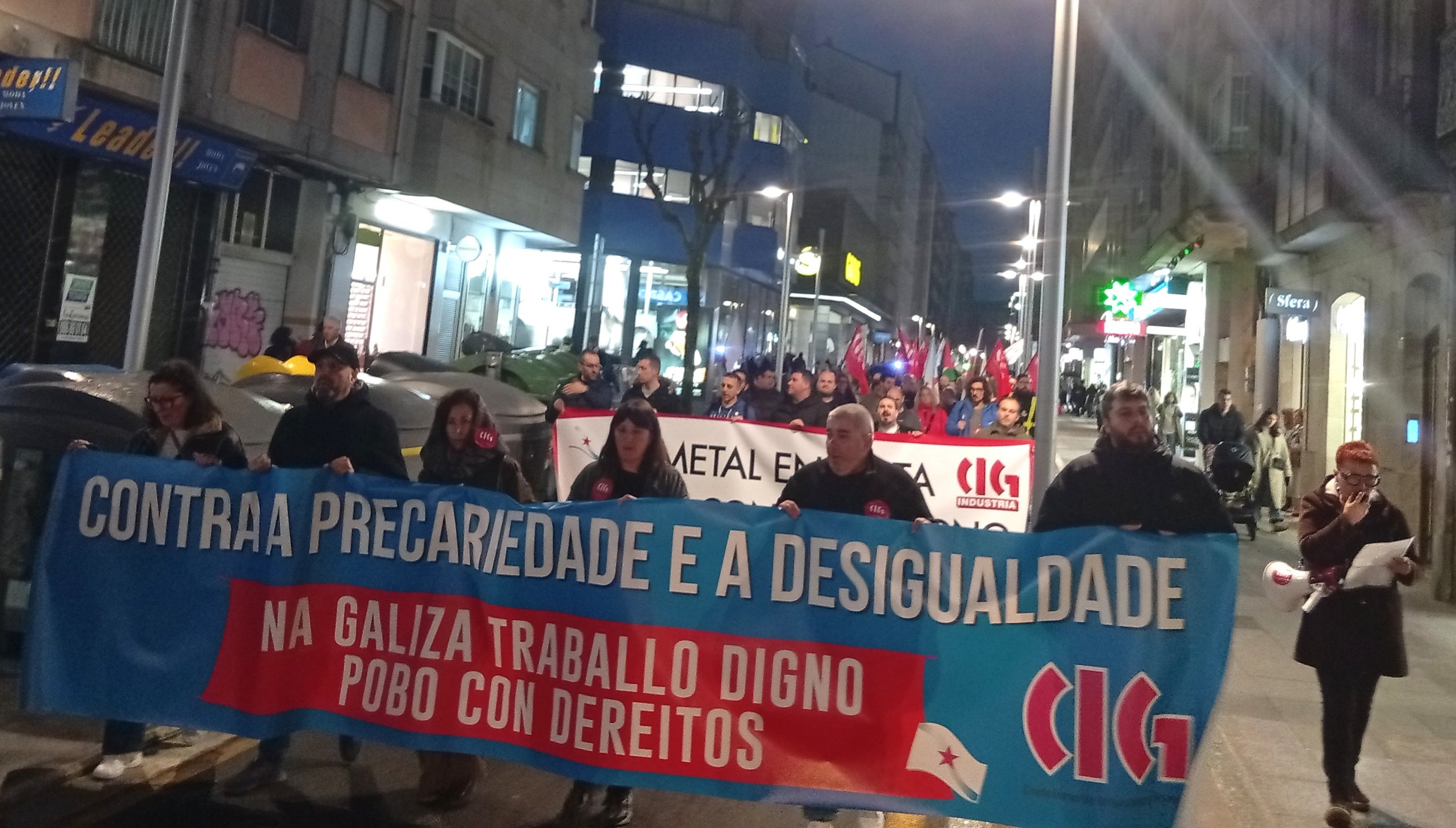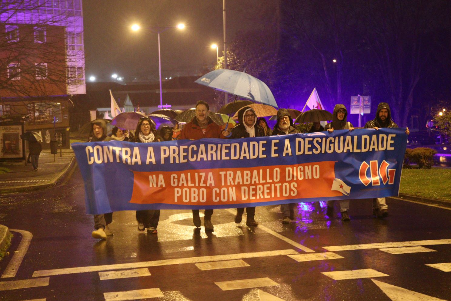 Baixo o lema “Contra a precariedade e a desigualdade, na Galiza traballo digno, pobo con dereitos”, a CIG mobilizouse este 10 de Marzo en 14 localidades para lembrar as loitas do ano 1972, durante as que foron asasinados en Ferrol pola policía franquista os traballadores da antiga Bazán, Amador Rei e Daniel Niebla. Unhas mobilizacións que foron o xerme do sindicalismo nacionalista galego que hoxe representa a CIG e por iso, no Día da Clase Obreira Galega, a central quixo facer unha xornada de reivindicación por todo o país “porque esta é á maneira de manter vivas e vixentes as loitas do ano 72 pola liberdade, por salarios e condicións laborais xustas e por defender a negociación colectiva en Galiza”.