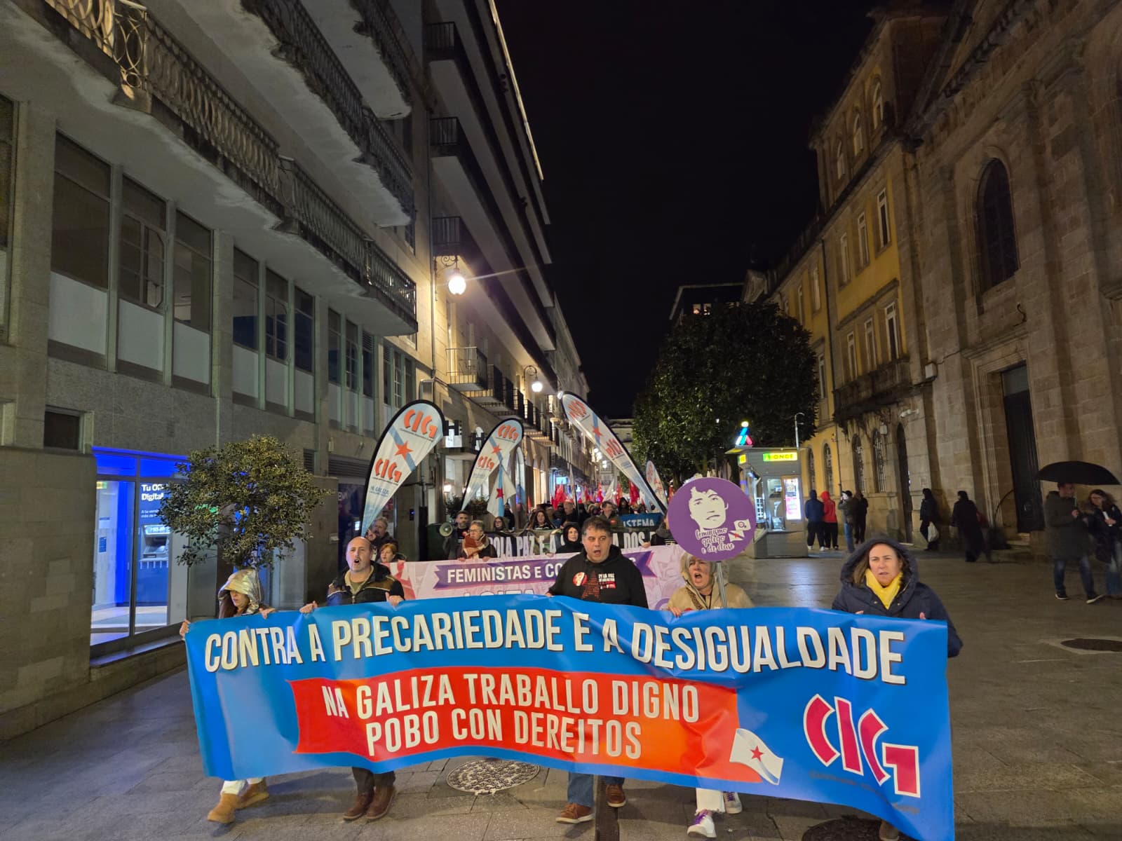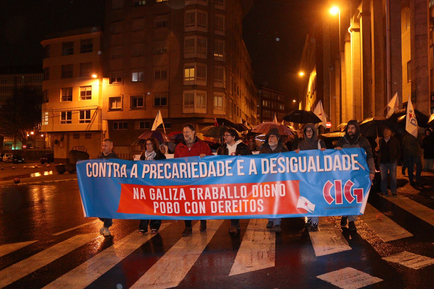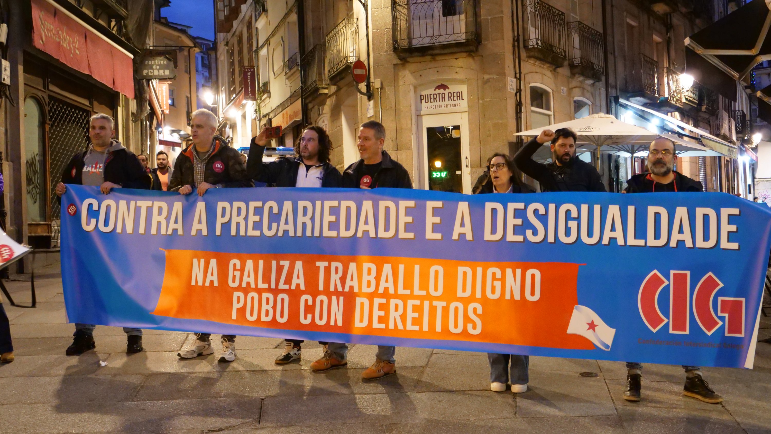 Baixo o lema “Contra a precariedade e a desigualdade, na Galiza traballo digno, pobo con dereitos”, a CIG mobilizouse este 10 de Marzo en 14 localidades para lembrar as loitas do ano 1972, durante as que foron asasinados en Ferrol pola policía franquista os traballadores da antiga Bazán, Amador Rei e Daniel Niebla. Unhas mobilizacións que foron o xerme do sindicalismo nacionalista galego que hoxe representa a CIG e por iso, no Día da Clase Obreira Galega, a central quixo facer unha xornada de reivindicación por todo o país “porque esta é á maneira de manter vivas e vixentes as loitas do ano 72 pola liberdade, por salarios e condicións laborais xustas e por defender a negociación colectiva en Galiza”.