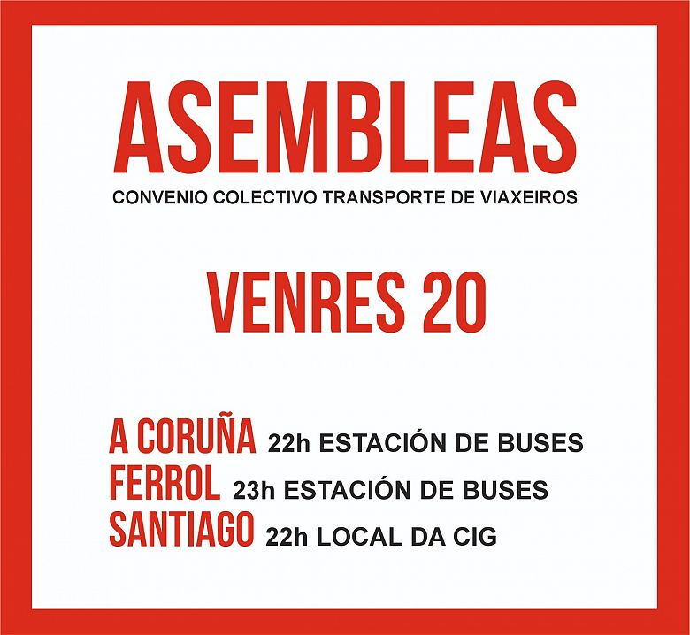 Para informar do contido da reunión de hoxe e abordar a resposta a dar, a CIG ten convocadas asembleas de traballadores e traballadoras para esta noite na Coruña, Santiago de Compostela e Ferrol.