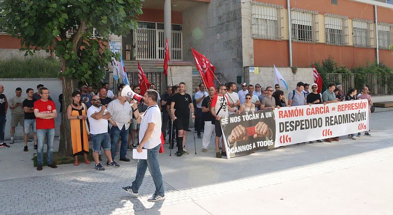 Delegadas e delegados da CIG realizaron unha concentración este mércores diante do SMAC da Coruña en apoio ao presidente do comité de Carpintería Ramón García de Ordes e para reclamar a súa readmisión inmediata. A central nacionalista denuncia que se trata dun caso evidente de represión contra o traballador polo simple feito presentarse ás eleccións pola CIG, gañalas e desenvolver a acción sindical que lle corresponde como representante legal dos traballadores e traballadoras.