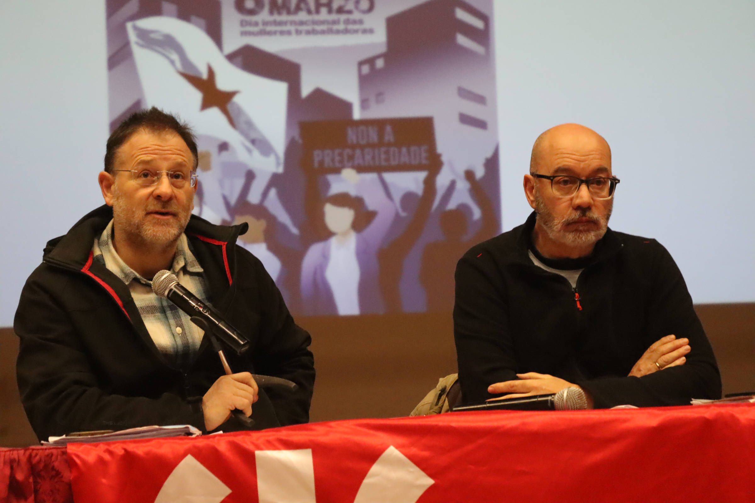 O secretario xeral da CIG, Paulo Carril, anunciou hoxe que a central sindical combinará ao longo deste ano a socialización de propostas co desenvolvemento de protestas contra a precariedade e a pobreza laboral no marco da campaña ‘Traballo, igualdade e salarios dignos nunha Galiza con dereitos’. Hoxe celebráronse asembleas de delegados/as nas sete cidades do país e en Ribeira para abordar o contido dunha campaña na que se insiren as mobilizacións dos vindeiros 8 e 10 de Marzo e que se estenderán tamén ao mes de abril, camiño do Primeiro de Maio.