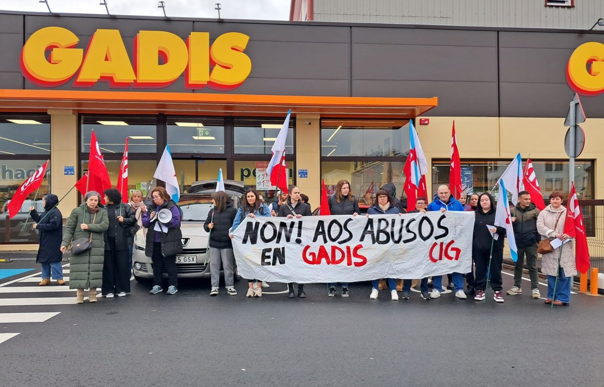 A sección sindical da CIG en Gadis desenvolveu unha concentración este venres diante do supermercado que a empresa ten en Vimianzo en rexeitamento aos abusos que están a sufrir as traballadores e traballadoras, reclamar un entorno laboral saudábel e que se respecten os seus dereitos.