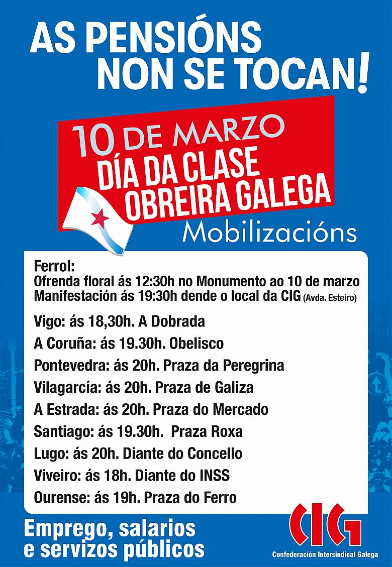 Desde o ano 1972, o sindicalismo nacionalista celebra o 10 de Marzo, Día da Clase obreira Galega. Nesta data conmemoramos as loitas protagonizadas pola clase traballadora galega en 1972 durante as que foron asasinados en Ferrol, pola policía franquista, os traballadores da antiga Bazán, Amador e Daniel.