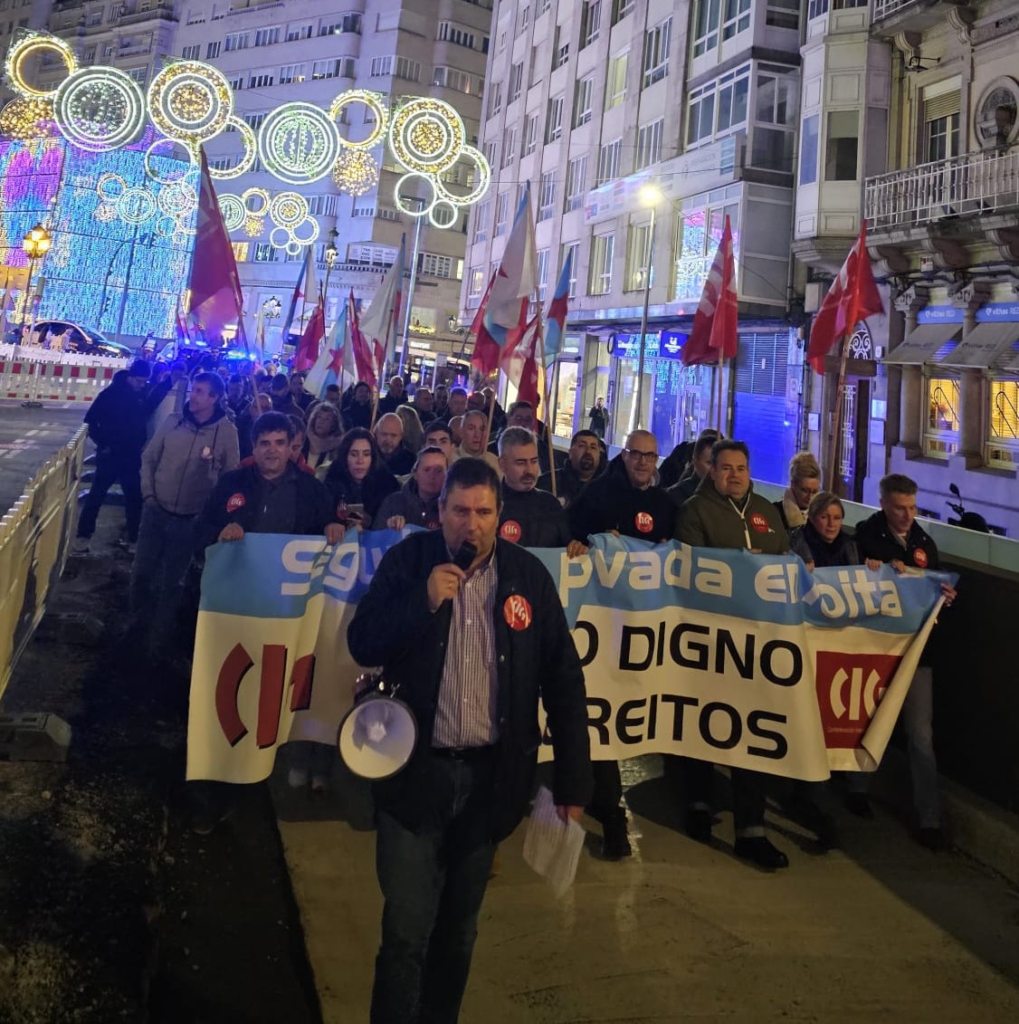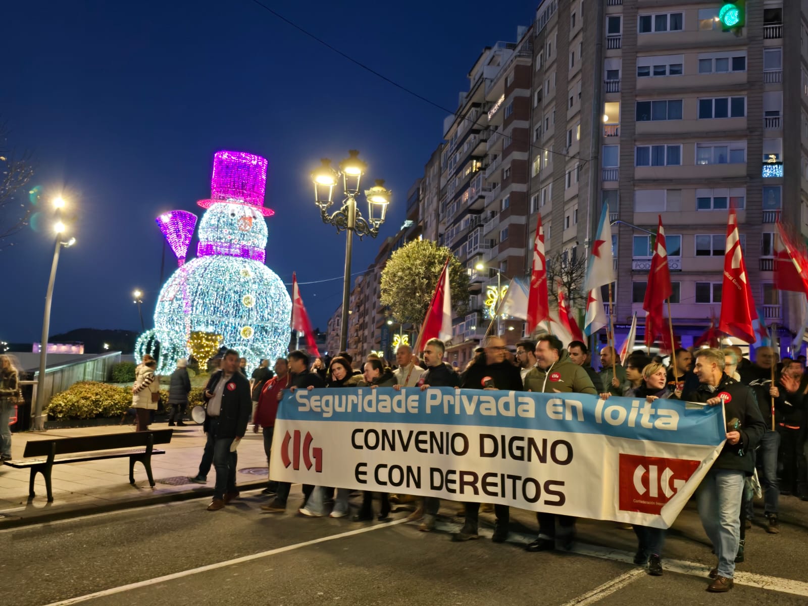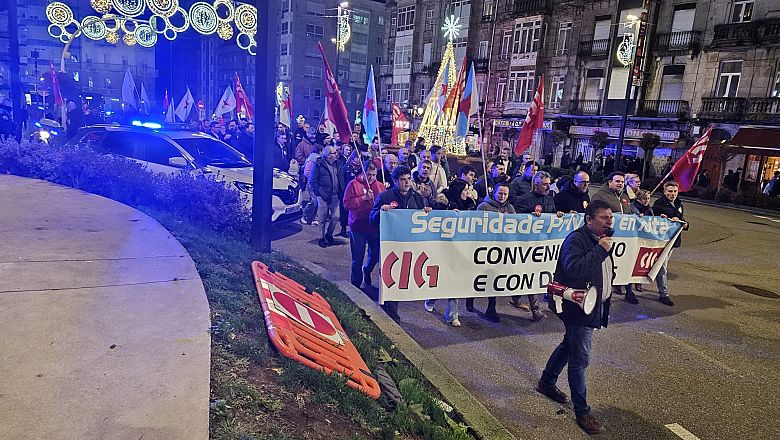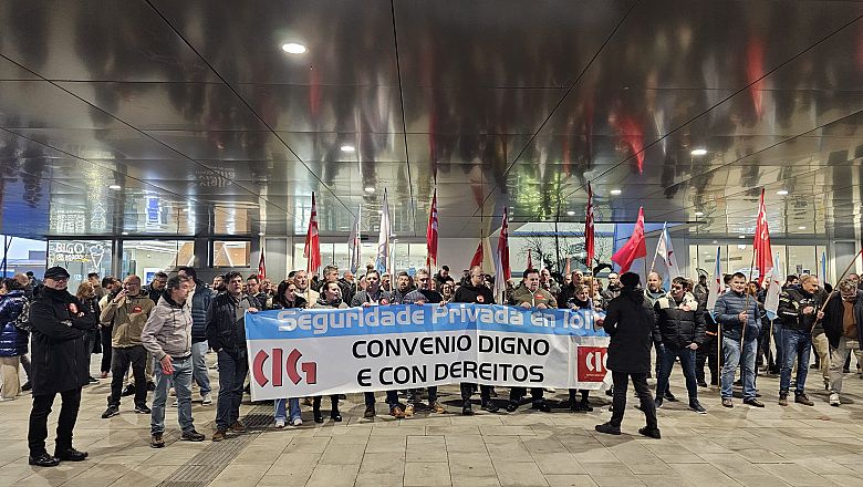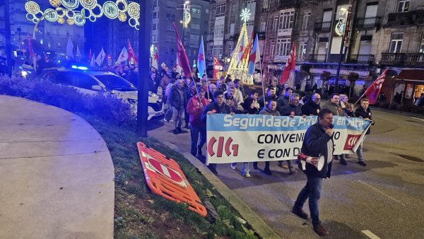 A CIG-Servizos considera esgotada a vía estatal de negociación colectiva na seguridade privada e insta a pactar un convenio galego que dea resposta ás necesidades do sector. A representación da central sindical trasladou o seu rexeitamento á proposta da patronal na xuntanza celebrada hoxe, na que o resto de sindicatos asumiron en boa parte as cuestións achegadas polo empresariado. Precisamente para reclamar unhas condicións laborais dignas, a central a CIG puxo en marcha un calendario de mobilizacións que comezou a semana pasada en Santiago e que esta tarde continuou en Vigo, cunha manifestación polos arredores do centro comercial Vialia.