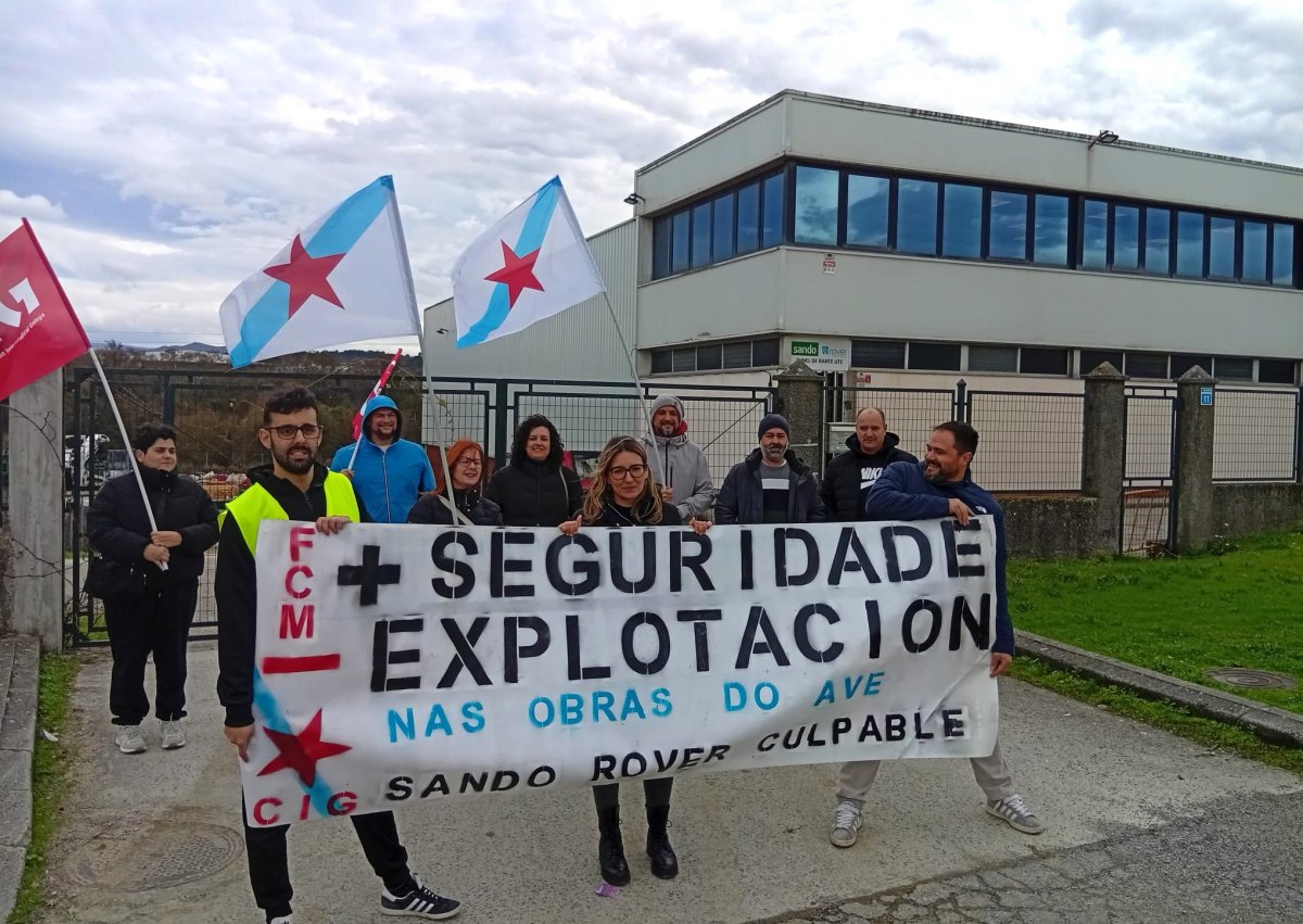 A Federación da Construción e Madeira (FCM) da CIG de Ourense levou a cabo hoxe unha concentración diante da sede da Unión Temporal de Empresas (UTE) que está a executar un dos tramos do AVE na provincia, Construcciones Sánchez Domínguez Sando y Rover Infraestruturas (Sando y Rover), para denunciar a situación de explotación e a falta de seguridade que padecen as persoas traballadoras destas obras, o que ten provocado xa varios accidentes graves e mesmo mortais.