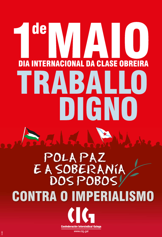 A CIG presentou esta mañá a campaña arredor da que xira este ano a conmemoración do Primeiro de Maio, Día Internacional da Clase Obreira. Unha xornada na que a central sindical ten convocadas 16 manifestacións en cidades e vilas -a principal, desta volta, terá lugar na Coruña- e que se celebrará baixo o lema “Traballo digno. Pola paz e a soberanía dos pobos. Contra o imperialismo”.