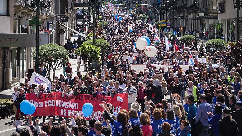 Pero as galegas/os estamos fartas/os, cheas/os de aturar incontábeis ataques aos nosos dereitos laborais e sociais. E así o manifestamos nas loitas e duros conflitos rexistrados nos últimos meses: aí está a extraordinaria e histórica folga de mulleres do 8 de marzo, as mobilizacións do colectivo de pensionistas, do persoal da xustiza, as protestas do persoal sanitario e de miles de galegas/os contra o desmantelamento da sanidade pública, as folgas en diferentes sectores e empresas durante o pasado ano e o que levamos de 2018 contra o bloqueo patronal da negociación e na defensa duns convenios dignos, a batalla encetada contra Servicarne-Coren para rematar coa escravitude que supón o negocio das falsas cooperativas, etc.