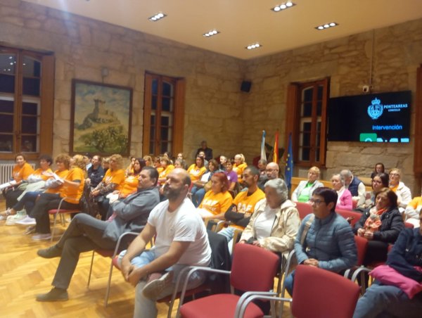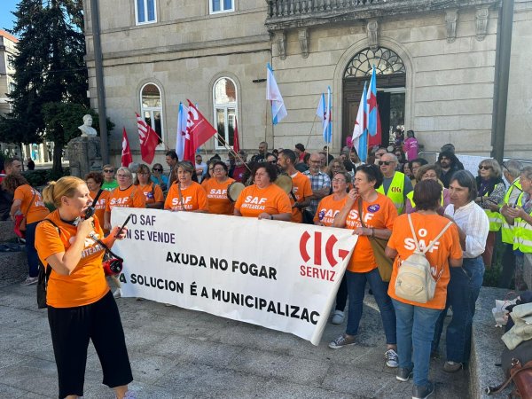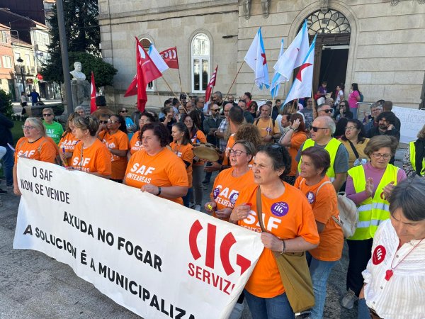 A CIG ten convocada unha manifestación este xoves 16 de outubro en apoio da loita do persoal do Servizo de Axuda no Fogar (SAF) do Concello de Ponteareas, en folga indefinida ante os graves incumprimentos da empresa, e para reclamar un sector de coidados público e de calidade. As traballadoras expuxeron a súas reivindicacións hoxe no pleno extraordinario no que saíu adiante unha moción do Goberno local que se limita a darlle un prazo á concesionaria para que corrixa as deficiencias pero que non contempla a rescisión do contrato como reclaman as afectadas.
