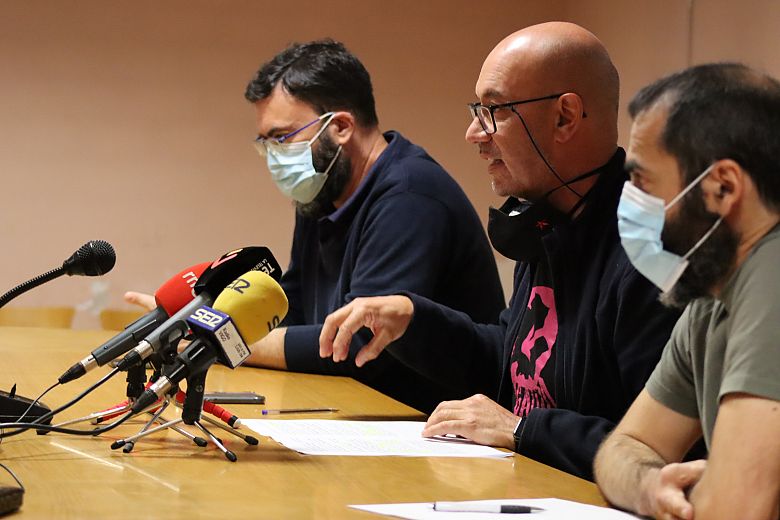 O secretario comarcal da CIG-Vigo, Alberto Gonçalves, o responsábel do naval da federación de Industria, César Rodríguez, e o secretario comarcal da CIG-Industria, Xulio Fernández, compareceron hoxe en rolda de prensa para ofrecer unha serie de datos que evidencian a grave crise na que se atopa inmerso o sector e para debullar os detalles dunha campaña que incluirá a convocatoria dunha gran manifestación en maio.