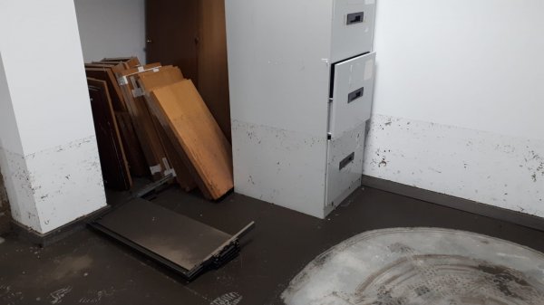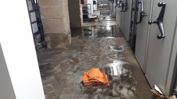 Que as dependencias do arquivo están asolagadas é coñecido pola Consellaría de Xustiza cando menos dende onte, xa que o domingo a empresa encargada do mantemento do edificio estivo realizando labores de limpeza, polo que a zona da maquinaria está seca e limpa. Porén, as estancias nas que se gardan os expedientes xudiciais (tanto dos procedementos xa rematados como dos que están abertos) permanecen empapadas e só hai dúas traballadoras recollendo arquivos na zona afectada.