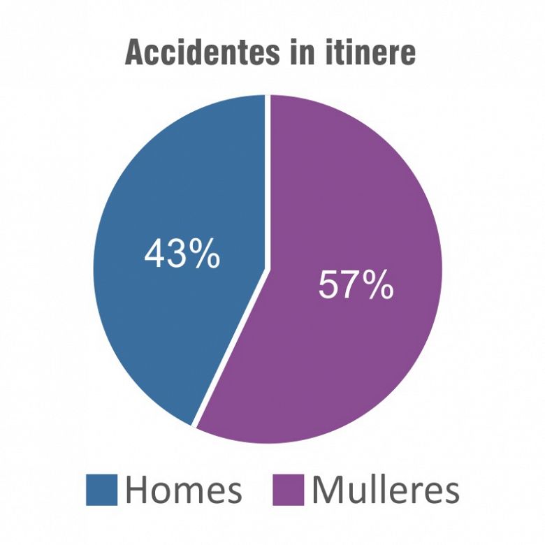 Ademais, case un 57% dos accidentes no camiño cara a, ou desde, o traballo afectan a mulleres. A CIG atribúe este incremento a que as mulleres traballan a tempo parcial máis que os homes, teñen que combinar dous traballos e, ademais diso, son responsábeis do groso das tarefas domésticas e familiares en contraste cos homes. Unhas taxas que superan a media doutros países da UE durante o período considerado (2012-2015).