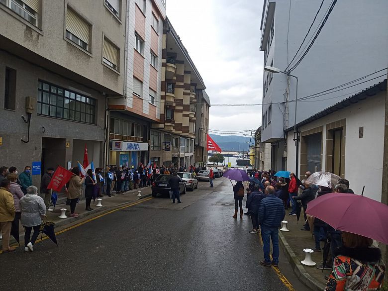 A sección sindical da CIG en Abanca realizou unha concentración esta mañá contra o peche da oficina de Celeiro na que participaron arredor de 200 veciños e veciñas que reclamaron non quedar sen servizos, neste caso financeiros. Abanca está pechando oficinas e restrinxindo os horarios e as operacións que a clientela pode realizar nos centros que quedan abertos, obrigándolles a facer longas colas e esperas xa que as oficinas están sobrecargadas.