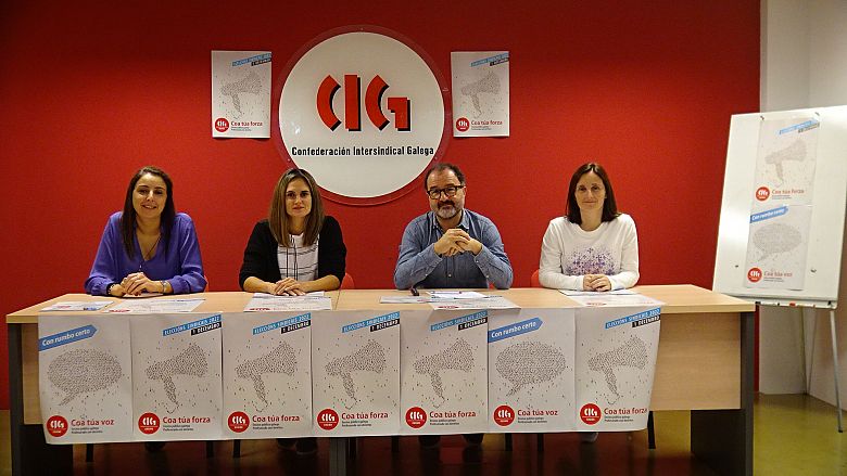Esta mañá presentouse o programa electoral e as candidaturas da CIG-Ensino que están encabezadas polo secretario nacional, Suso Bermello, mestre de Primaria en excedencia e profesor de Xeografía e Historia con destino no IES Agra de Leborís, na Laracha, e cabeza de lista pola provincia da Coruña. Bermello estivo acompañado no acto desta mañá por Laura Arrojo, profesora de Matemáticas con destino no IES Gregorio Fernández, de Sarria, Elena Añel, mestra especialista de PT en excedencia e actualmente con destino como Orientadora Educativa no IES Cosme López da Rúa e Maruxa Martínez, profesora de Bioloxía e Xeoloxía no IES San Tomé de Vigo.