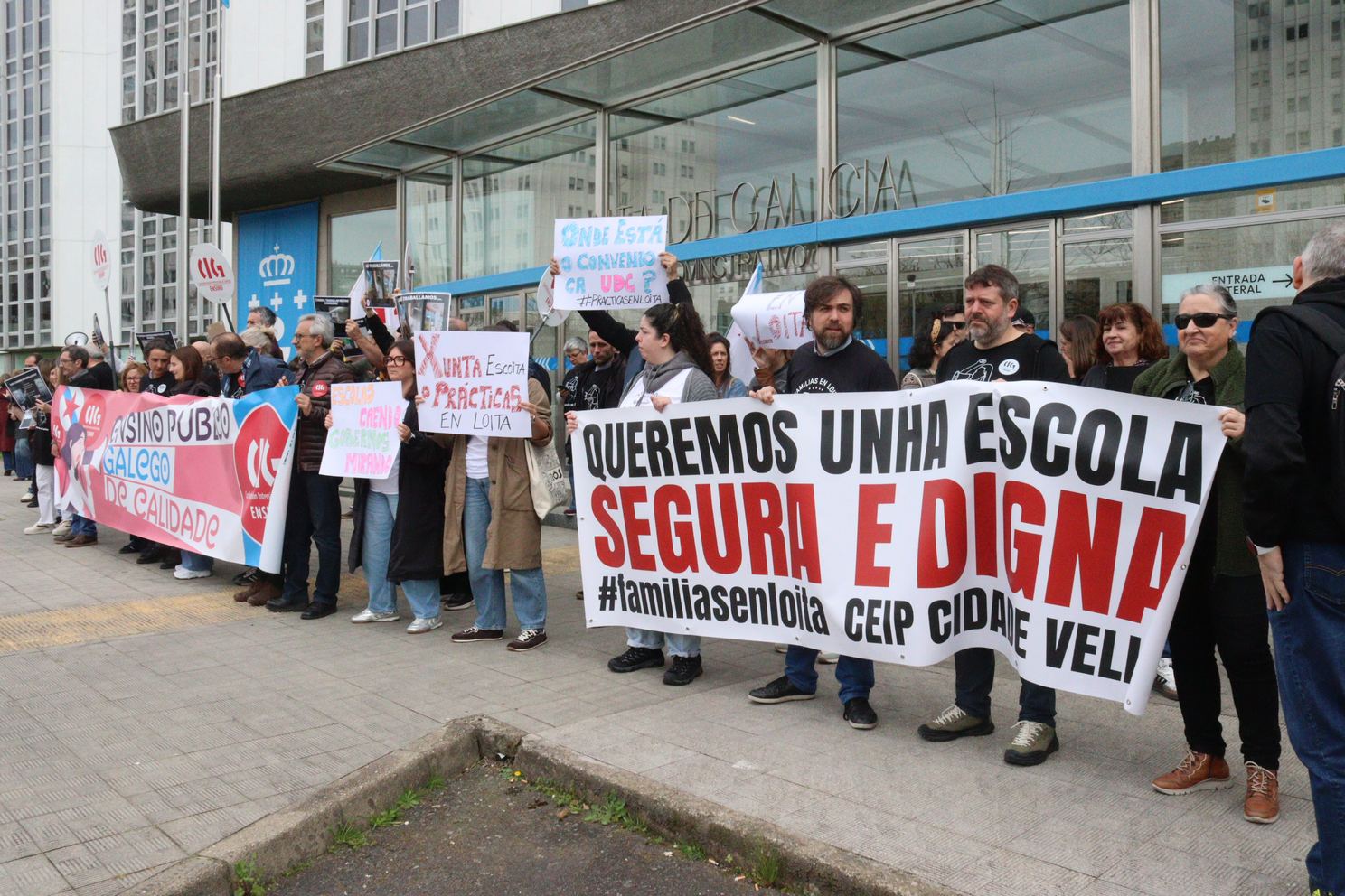 Ante a situación límite que atravesan numerosísimos centros de ensino público en Galiza, a CIG-Ensino manifestouse na mañá deste mércores nas dependencias da Consellaría de Educación na Coruña, posto que nesta provincia existe un elevado número de centros con importantes deficiencias. Esta problemática xa foi levada á Xunta de Persoal provincial por parte da central sindical, sen que se tomasen medidas máis alá de anunciar plans que nunca se levan a cabo.