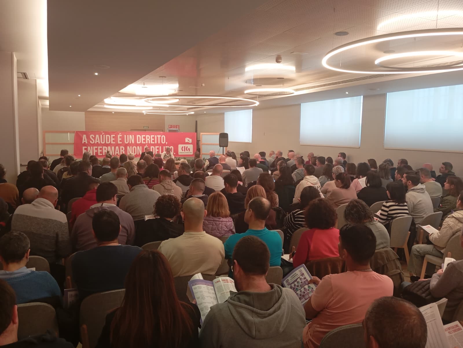 A CIG encetou hoxe a campaña de información e mobilizacións coa que baixo o lema ‘O absentismo non é un problema, é un síntoma’ pretende desmontar as mentiras coas que a patronal e a Xunta insisten en responsabilizar a clase traballadora das baixas laborais, criminalizando as ausencias e buscando culpabilizar as persoas por enfermar. O secretario xeral da central nacionalista, Paulo Carril, que participou na asemblea de persoas delegadas sindicais e na manifestación de Pontevedra, quixo deixar moi claro que “a saúde é un dereito e enfermar non é un delito” e acusou os Gobernos español e galego de actuar ao mandato do empresariado permitindo que as mutuas asuman máis competencias no tratamento de doenzas músculo esqueléticas e de saúde mental.