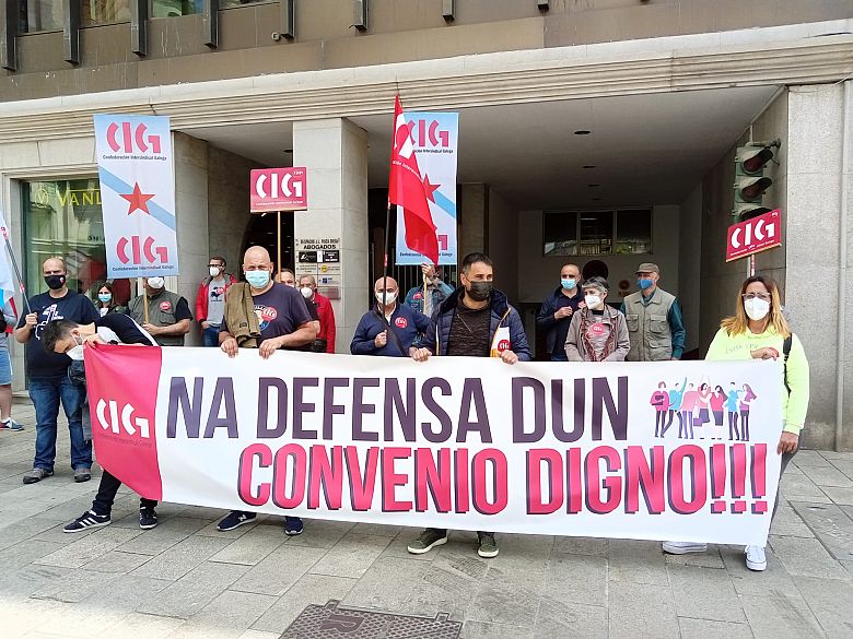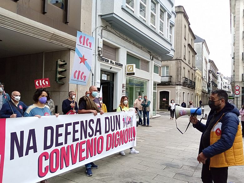 A CIG realizou unha concentración este mércores diante da Confederación de Empresarios/as de Lugo para protestar pola situación precaria da negociación colectiva na provincia, tendo en conta que na actualidade existe unha serie de convenios colectivos provinciais que levan anos vencidos (algúns deles máis dunha década) e sen que existan expectativas de negociación a curto prazo.