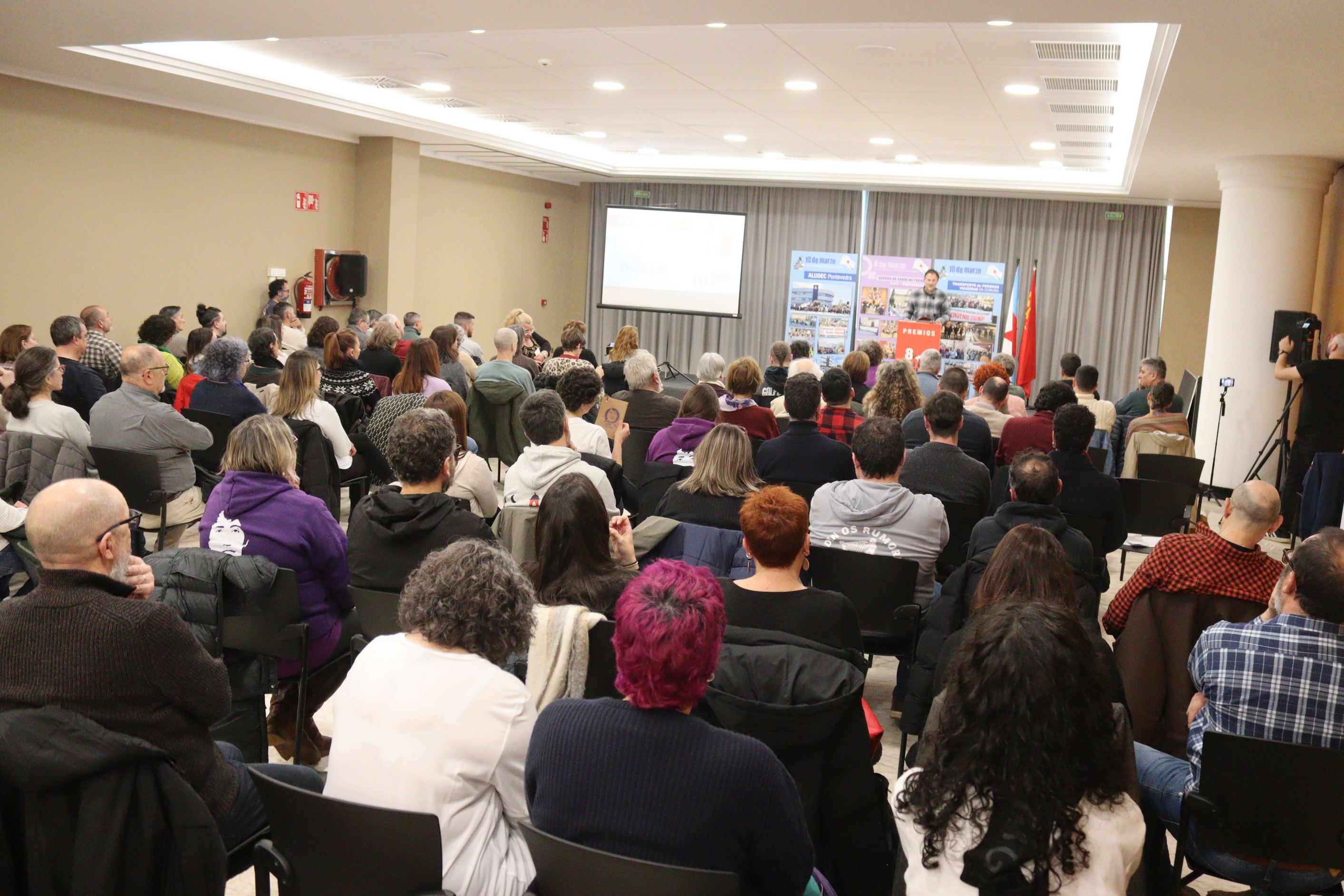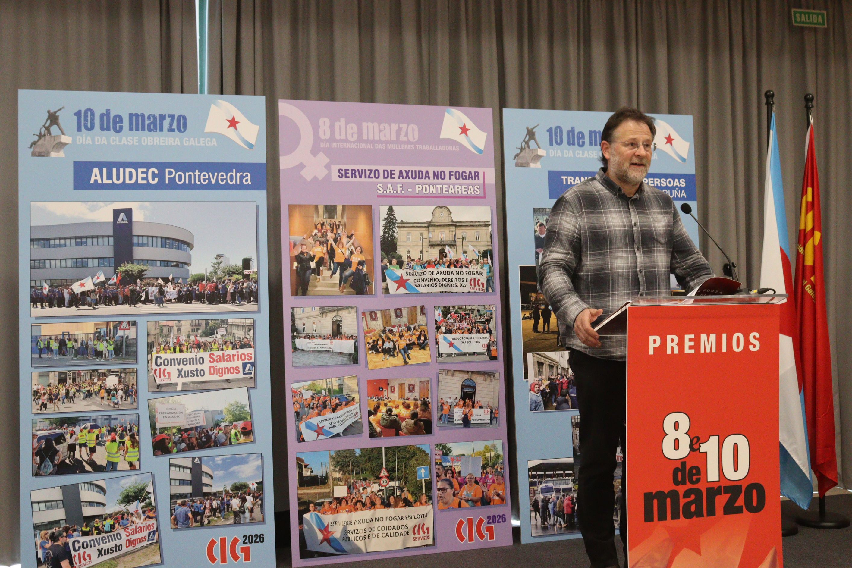A CIG recoñeceu este venres co ‘Premio 10 de Marzo’ a loita do persoal do transporte de viaxeiros/as da Coruña na demanda dun convenio colectivo xusto, pola súa dignidade e para exixir respecto pola súa vontade. Un conflito duro, pero que demostrou a capacidade de mobilización, organización e resistencia deste sector fronte a unha patronal que primeiro secuestrou a negociación colectiva e despois non dubidou en recorrer a todo tipo de manobras para impoñer un acordo que o persoal rexeitou con absoluta contundencia. No acto deste venres, decorrido en Compostela, fíxose tamén unha mención especial á loita do persoal de Aludec Pontevedra en contra da precariedade laboral e para esixir convenios colectivos xustos.