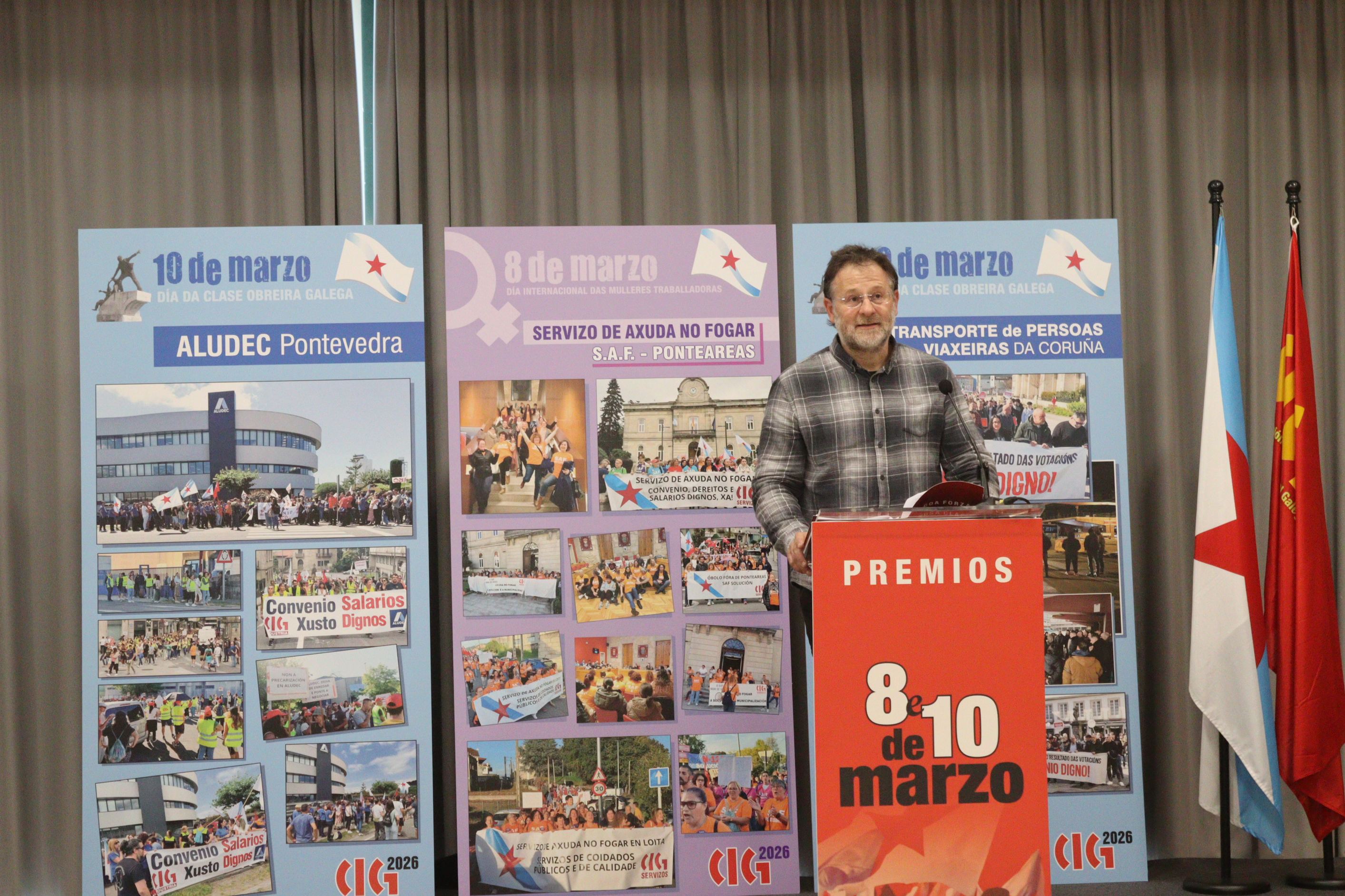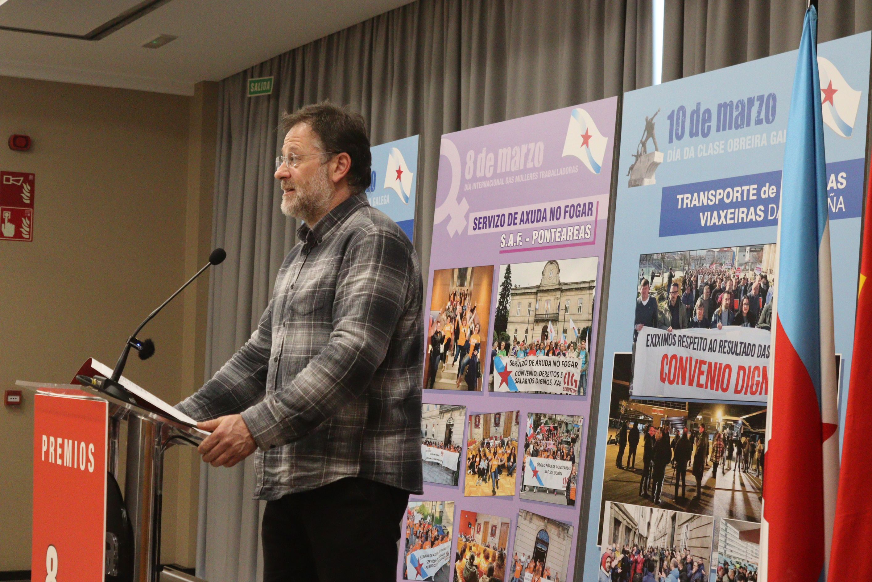 O secretario xeral da CIG, Paulo Carril, encargado de entregar o premio, salientou a capacidade de resposta sindical e de dignidade das traballadoras e traballadores do sector do transporte "fronte á unión política entre o poder político e empresarial que representan o PP e o grupo Monbús". E apuntou que as loitas recoñecidas neste acto "dan fe da adversidade a que cada día se enfronta a clase obreira galega".